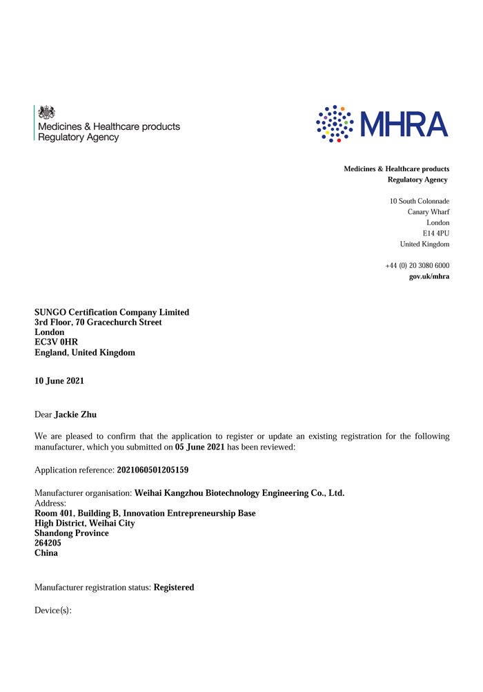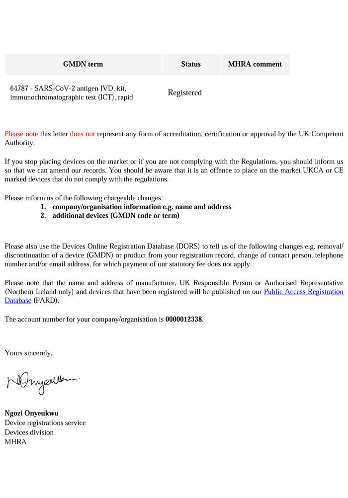 COVID-19 Antigen - UK MHRA Registration